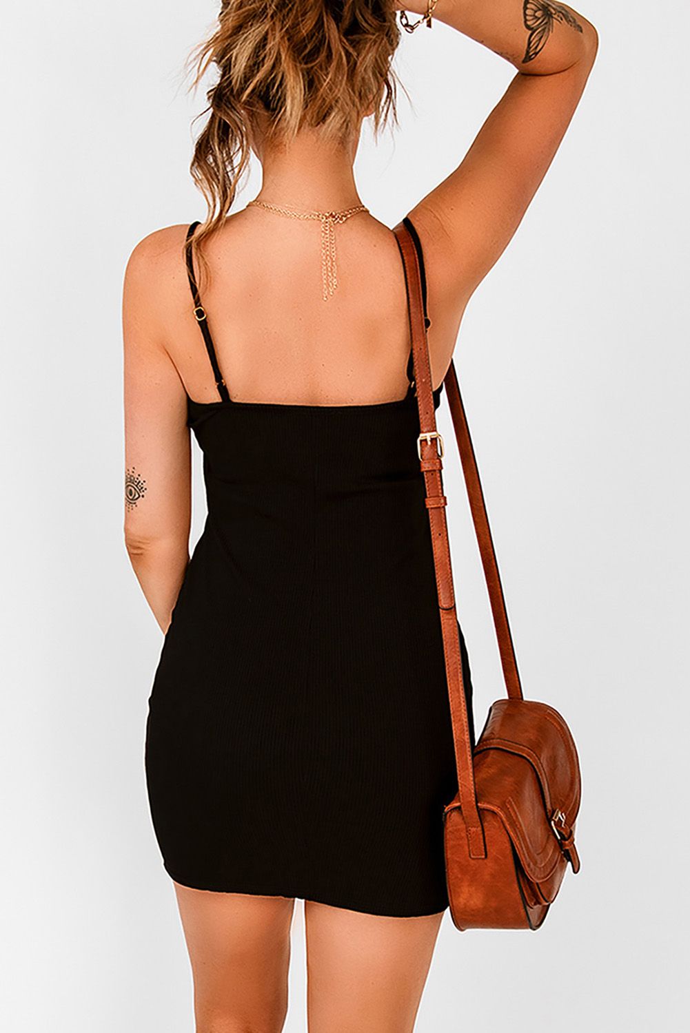 Black MOM Slogan Rib Knit Spaghetti Straps Dress