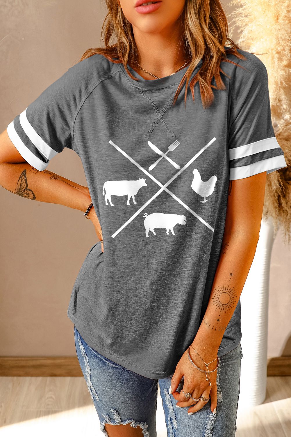 Gray Farm to Table Funny Animal Graphic T Shirt