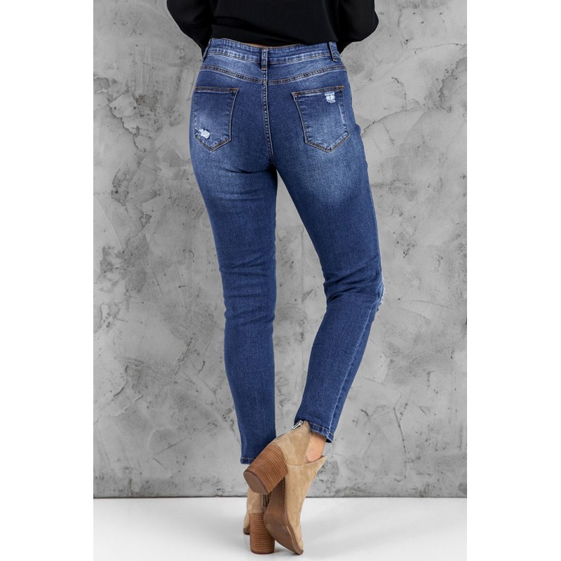 Blue Plaid Patchwork Graphic Print Distressed Skinny Jeans